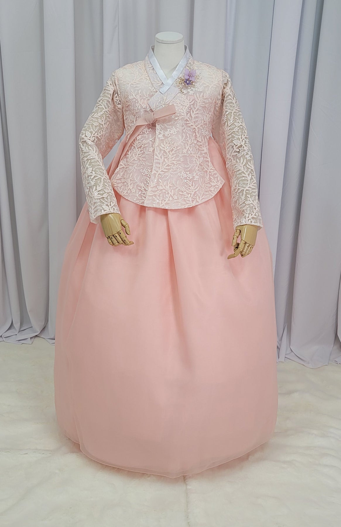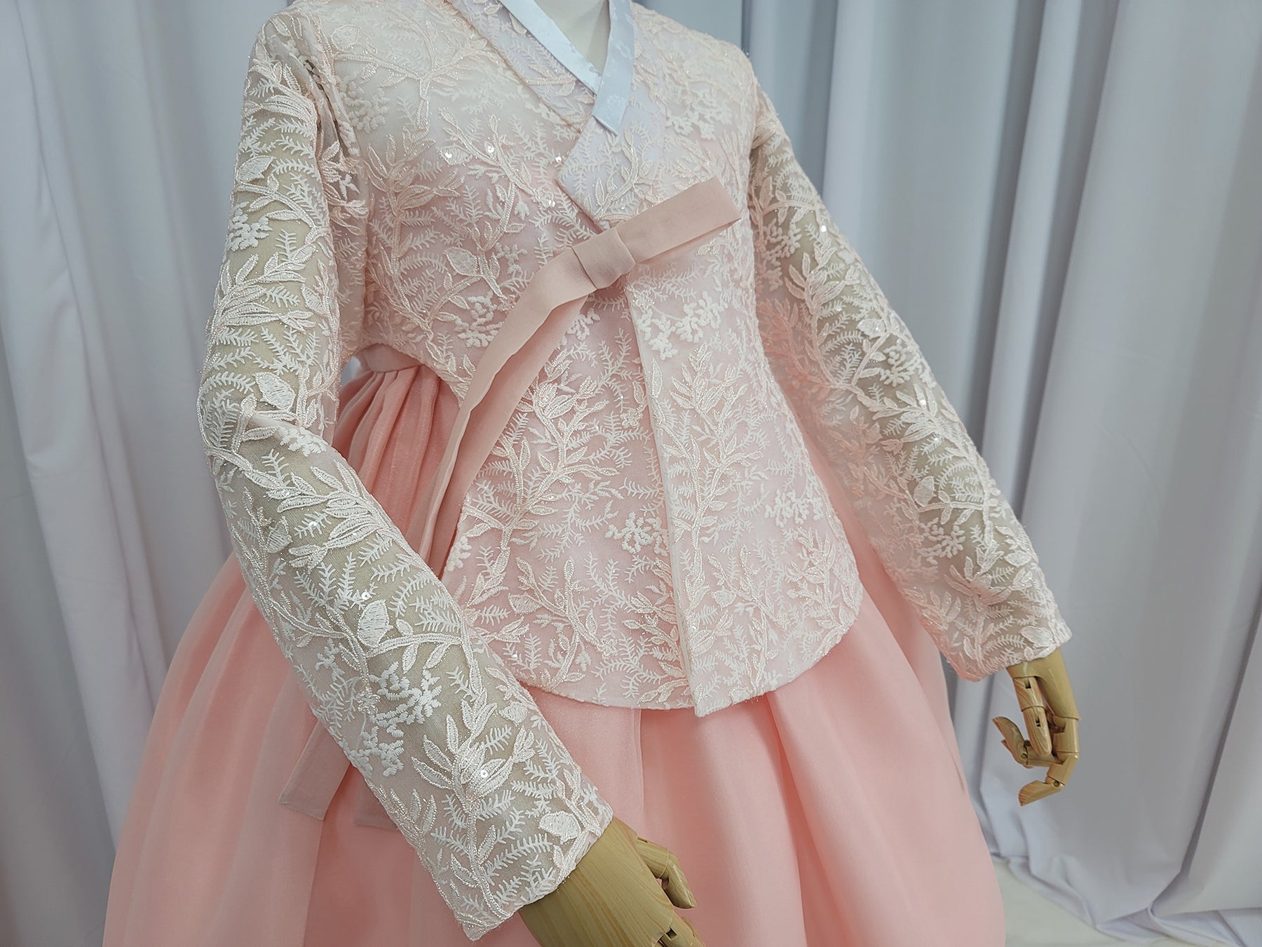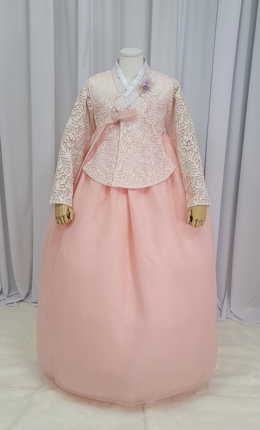 Korean Traditional Fancy Woman Personal Custom Hanbok Wedding Party Ceremony Mom Daughter Couple Look Pink Peach Lace Hanbok OSF136