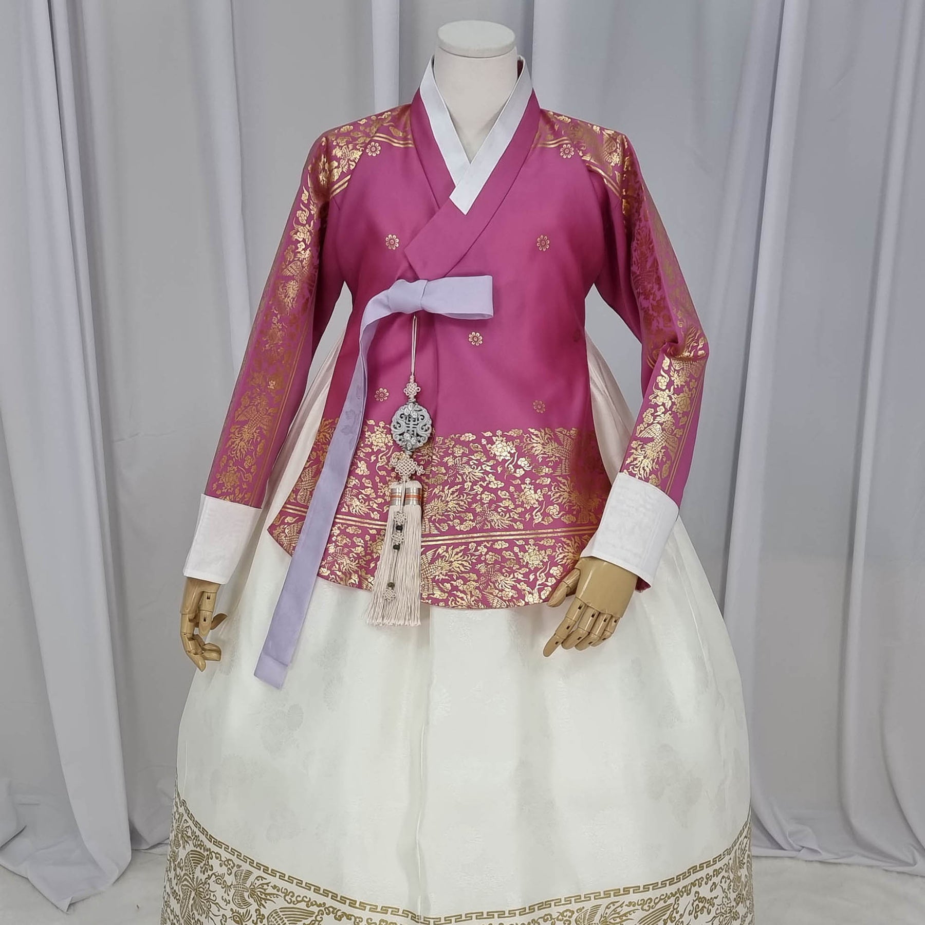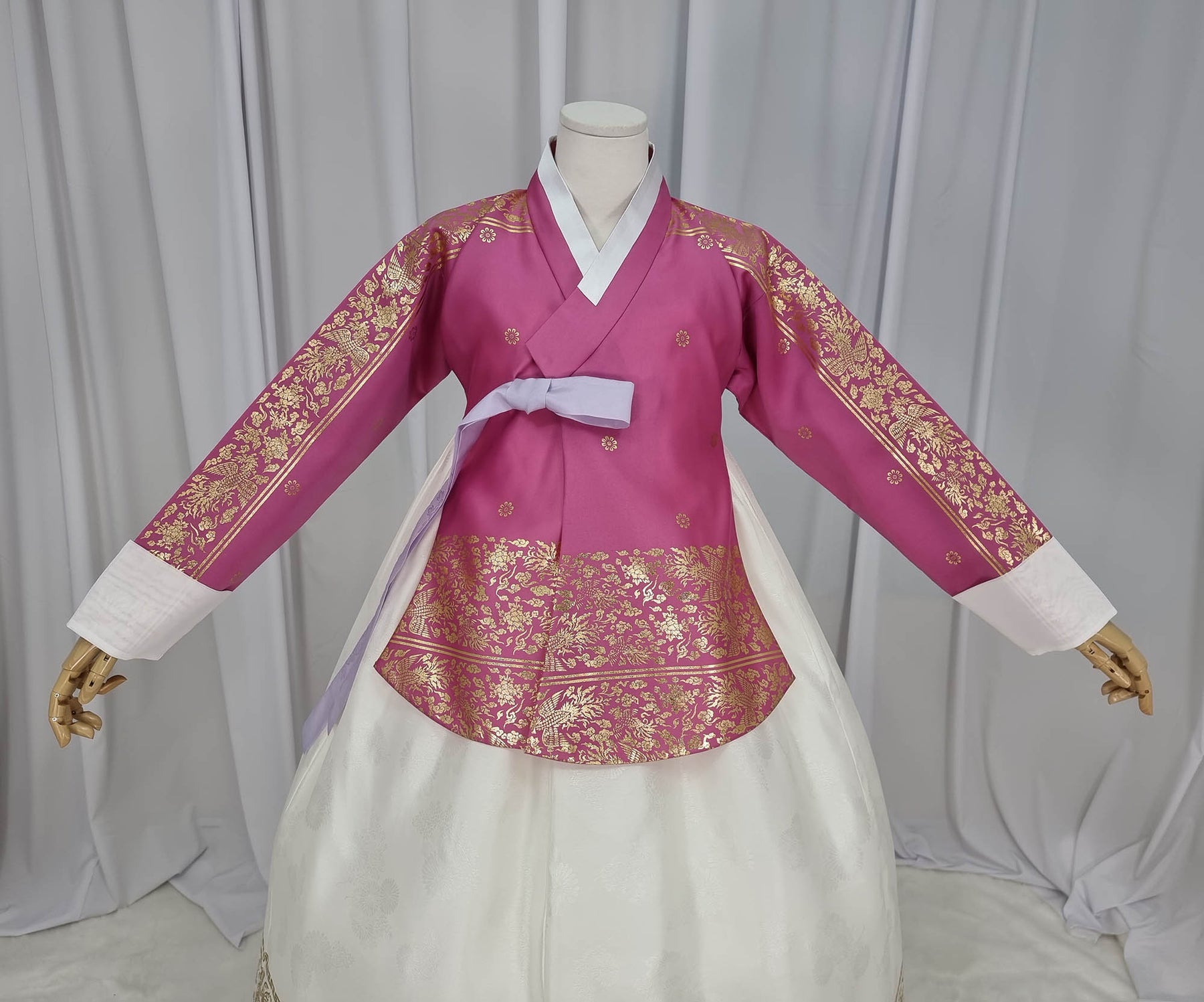 Korean Traditional Woman Personal Custom Hanbok Wedding Party Ceremony High Quality Print Dangui 당의 Queen Princess Design Hanbok Pink Ivory OSW146