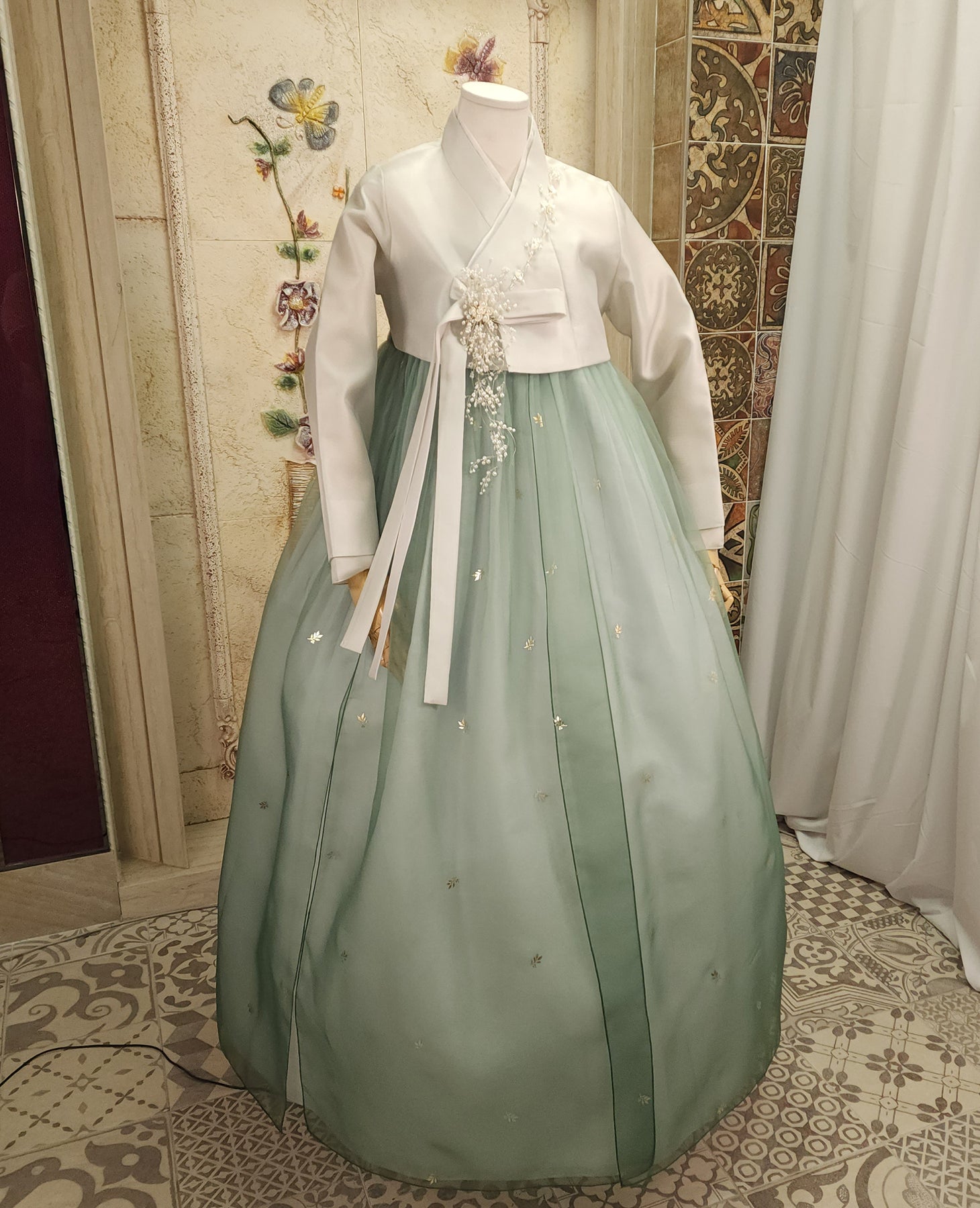 Korean Traditional Woman Personal Custom Hanbok Wedding Party Ceremony Ivory Green Khaki OSW012
