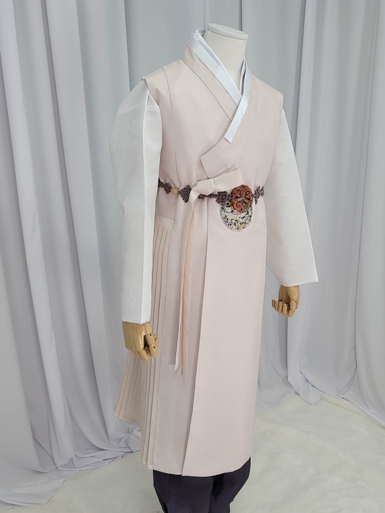 Korean Traditional Custom Hanbok for MenDad & Son Couple Set | Wedding & Ceremony Wear | Ivory | OSM152